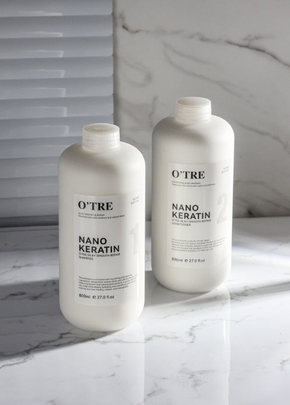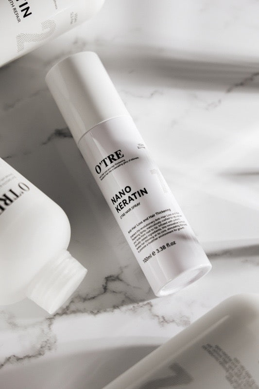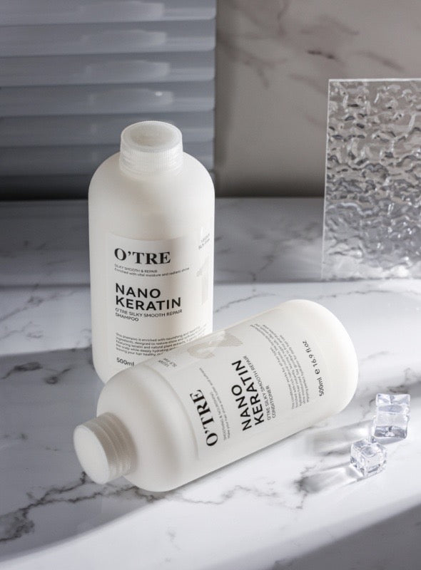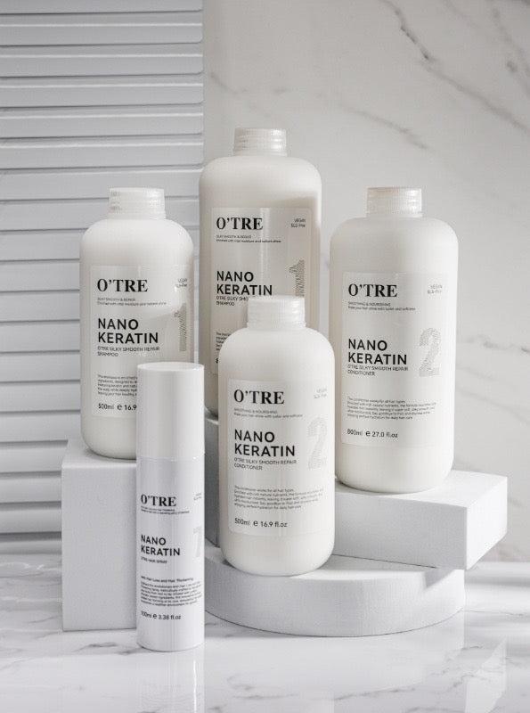 The O’tre Nano Keratin Hair Care Set is designed to reduce hair loss and repair damage from the inside out. Powered by an advanced, clinically referenced formula with Hydrolyzed Wheat Protein, Biotin, Collagen, Keratin, Hyaluronic Acid, Argan Oil, and Vitamin E, this routine not only nourishes hair follicles and supports new hair growth, but also improves scalp health, helps prevent dandruff, reduces frizz, and makes each strand thicker and stronger.