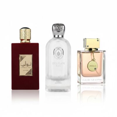 Bộ 3 nước hoa nữ Dubai cao cấp mùi thơm nhẹ nhàng, kiêu sa, sang trọng là lựa chọn hoàn hảo cho nàng yêu thích phong cách thanh lịch và tinh tế. Set gồm 3 chai dung tích lớn, mùi hương đa dạng từ tươi mát ban ngày đến quyến rũ buổi tối, phù hợp đi làm, đi chơi hoặc làm quà tặng cao cấp.
